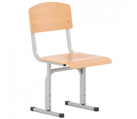 Стабилна метална рамка, прахово боядисана в сив цвят. Седалка и облегалка от многослойна дървесина в цвят натурален бук. Регулируем в 3 височини – 380/420/460 мм. Протектори на краката за защита на подови настилки. #ученически стол2024