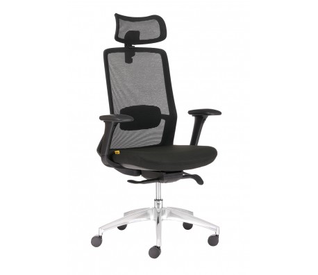 Eргономичен стол с мрежеста облегалка и полиуретанова седалка тапицирана с дамаска.