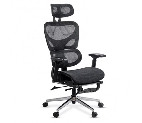 DILAN е мултифункционален ергономичен офис стол, специално изработен да поддържа правилна стойка на седящия и да осигурява максимален комфорт при продължителна работа. Моделът притежава голяма и извита облегалка за глава, която пасва перфектно на врата, регулируеми 3D подлакътници, прибираща се поставка за крака и лумбална опора. DILAN е тапициран с устойчива и еластична мрежеста материя, която предлага удобно изживяване при ползване.