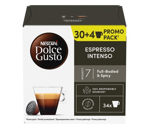 КАФЕ КАПСУЛИ NESCAFE DOLCE GUSTO ESPRESSO INTENSO ПРОМО ПАКЕТ 30+4 БР.
