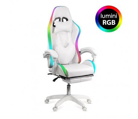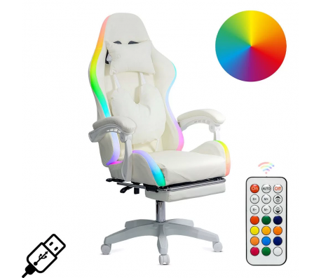 REYNA е нов модел геймърски стол, тапициран двойно подплатена дамаска от еко кожа. Притежава широка седалка, подлакътници с меки падове, регулируема лумбална опора и ригулируема облегалка за глава. Снабден е и с разтегателна поставка за крака, която ще Ви осигури допълнитело удобство при седене. Осветената цифрова LED лента придава модерен и футуристичен дизайн, а дистанционното управление Ви позволява да регулирате светлините, скоростта и интензитета на LED лентата. Облегалката му е с възможност за разтягане до 130 градуса.