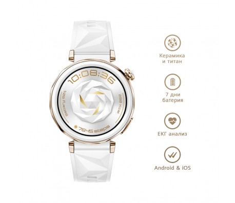 Часовник Huawei Watch GT5 Pro Jana-B29F, 1.32" Amoled 466x466, PPI 352, BT5.2, BLE/BR/EDR, 323mAh, 40-meter free diving, HUAWEI TruSense System, ECG analysis, Battery life up to 7 days, Compatible with iOS and Android devices, White Fluoroelastomer