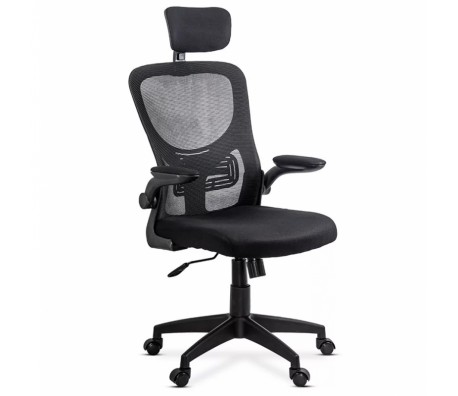 Черният офис стол Dexter съчетава усъвършенствана ергономия с модерен дизайн, предлагайки идеално решение за тези, които прекарват много време в офиса и се нуждаят от максимален комфорт. Столът се регулира, за да осигури оптимална позиция. Седалката може да се регулира между 42 и 50 см, а облегалката, оборудвана с 6 см вертикално регулируема лумбална опораперфектна поддръжка. Люлеещият механизъм може да се заключва в изходна позиция, а прибиращата се поставка за крака осигурява допълнителното удобство. Ергономичен стол Dexter се вписва идеално във всяка офис среда. Превърнете всеки работен ден в приятно изживяване.
