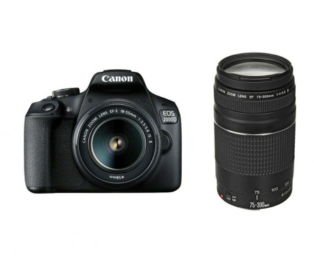 Canon EOS 2000D, black + EF-s 18-55mm f/3.5-5.6 IS II + EF 75-300 mm f/4.0-5.6 III
