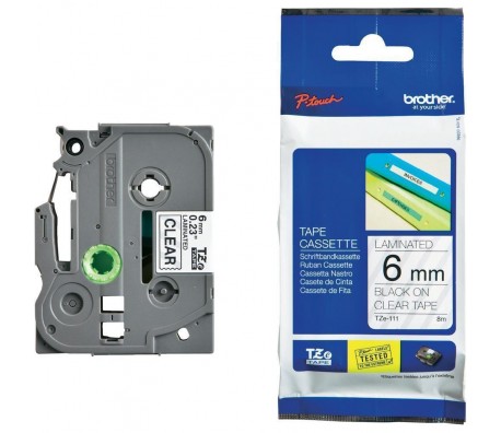 Brother TZe-111 Tape Black on Clear, Laminated, 6mm - Eco
