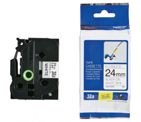 Brother TZe-FX251 Tape Black on White, Flexible ID, 24mm, 8m