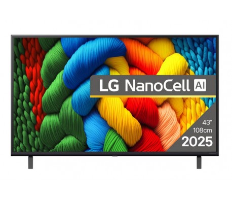 LG 43NANO80A3B, 43" 4K HDR Smart Nano Cell TV, 3840x2160, DVB-T2/C/S2, AI Alpha 7, HDR 10 PRO, webOS 25, ThinQ AI, VRR, ALLM, HGiG, WiFi, Clear Voice, AI Upscaling, Bluetooth, Hdmi e-ARC , CI, LAN, A