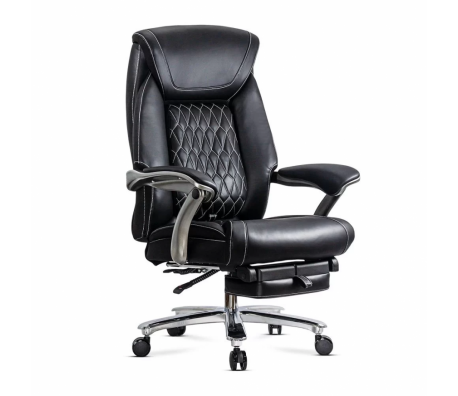 Директорски стол Fenon е идеалният избор за офиси, които наблягат на комфорта и елегантността. С модерен дизайн и качествена изработка, този модел се откроява с висококачествената си еко кожа, която е много лесна за почистване и поддръжка. Високата му облегалка (76 см) предлага оптимална опора за потребители с височина до 175 см, осигурявайки ергономична позиция през целия ден. Проектиран за дългосрочен комфорт, столът е оборудван с удобна седалка, която запазва формата и еластичността си. Прибиращата се поставка за крака е идеална за моменти на почивка, а облегалка може да се накланя до 135°. Столът притежава регулируемата лумбална опора, интегрирана в облегалката, като се адаптира перфектно към вашите нужди. Подлакътниците на стола са покрити с меки падове в еко кожа, осигурявайки приятна опора за ръцете. Здравата метална зоснова и амортисьор клас 4, гарантират стабилност и дълготрайна издръжливост.
