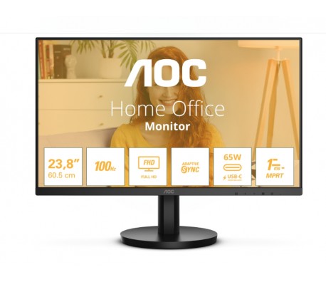 AOC 24B3CA2, 23.8" IPS WLED, 1920x1080@100Hz, 4ms GtG, 1ms MPRT, 250cd m/2, 1300:1, 20M:1 DCR, Adaptive Sync, FlickerFree, Low Blue Light, 2Wx2, Tilt, HDMI, USB hub