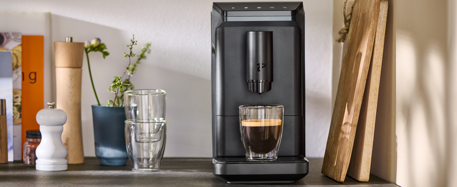 С натискането на един бутон, Tchibo Esperto Mini приготвя прясно сварено кафе, еспресо или кафе крема, благодарение на иновативната технология Intense+ и висококачествената конусна мелница от неръждаема стомана.
