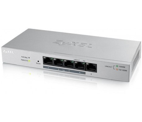 Суич 5-портов ZyXEL GS-1200-5HPV2, Web Managed, Gigabit, PoE