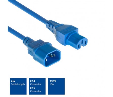 Захранващ кабел ACT, C14 - C15, 2m, Син