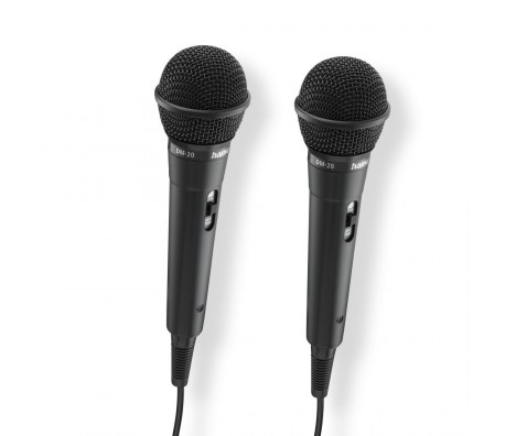 HAMA Аудио динамични микрофони “Karaoke”, Комплект 2 бр. с кабел жак 2,5 м + адаптер, вкл./изкл.