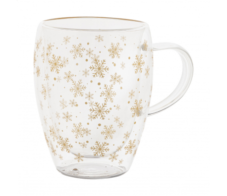 Термо чаша от стъкло с коледен дизайн в картонена кутия.