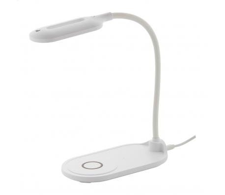 Многофункционална настолна лампа от рециклиран ABS материал с вградено безжично бързо зарядно (15W). С 10 светодиода, сензорен бутон и регулируема яркост. Включва USB кабел за зареждане.