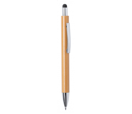Бамбукова химикалка за сензорен екран с метален клипс и връх. Със син пълнител.