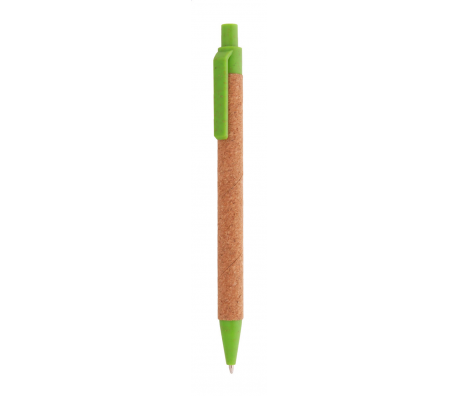 Химикалка, изработена от екологична пластмаса с цвят на пшенична слама, покрита с естествен корк. Със син пълнител.