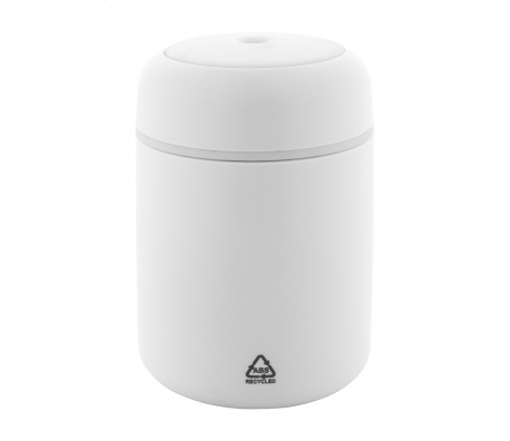 Настолен овлажнител от рециклирана ABS пластмаса с многоцветна LED светлина. Включва USB кабел за зареждане. Вместимост на резервоара: 280 мл.