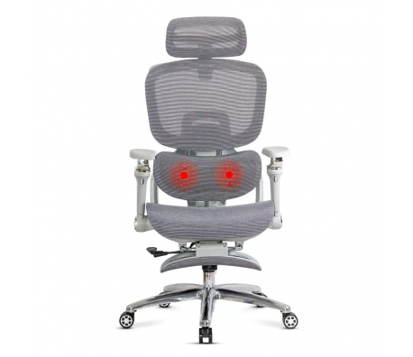 С модерен дизайн и солидна конструкция, този стол се откроява с електрическата си лумбална опора , която предлага двуролков масаж, затоплвне и автоматично регулиране според теглото на потребителя. Захранването се подава лесно към контакта с помощта на включения адаптер.