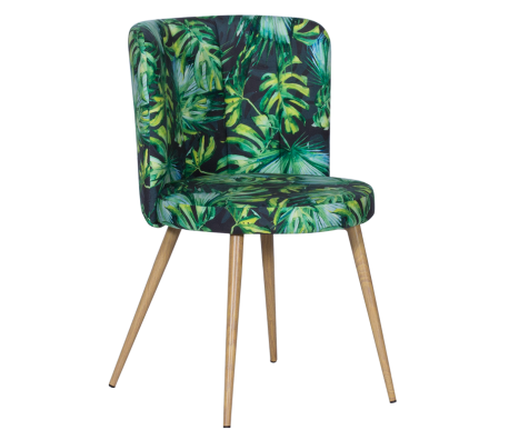 Трапезният стол FREYA е модел с модерен дизайн, който ще внесе стил и екзотика в интериора. Изработен е от висококачествена дамаскa с цветни мотиви и метални крака, наподобяващи дърво.