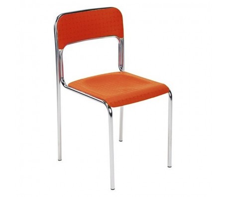 Здрава неразглобяема метална конструкция с хромирано покритие Седалка и облегалка от полипропилен с избор на цвят Възможност за стифиране до 8 бр. Произведено в ЕС