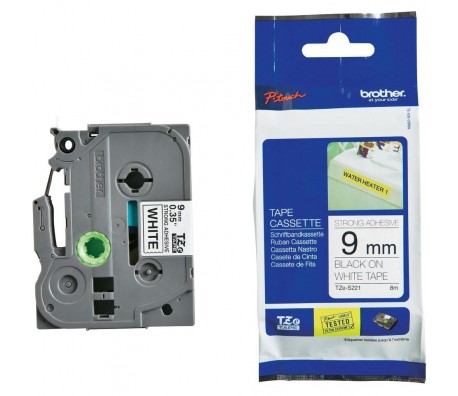 Съвместимост P-touch Label Printers Тип лента Extra Strength P-touch Tape Цвят Black on White Strong Adhesive Ширина на лентата, mm 9 mm Дължина на лентата, m 8 m Други Up to twice the adhesive strength of the Standard Laminated tapes. Recommended for use on textured, rough or uneven surfaces. Great for slippery painted metal items or powder coated surfaces