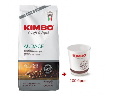 КАФЕ НА ЗЪРНА KIMBO AUDACE 1КГ + ЧАШИ 100БР.