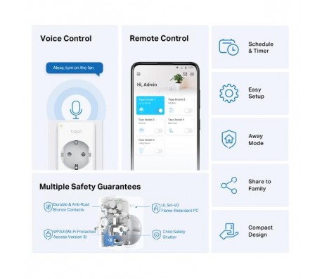 TP LINK TAPO P100 Смарт контакт 10A, 2300W, 2.4Ghz, задаване на график, таймер