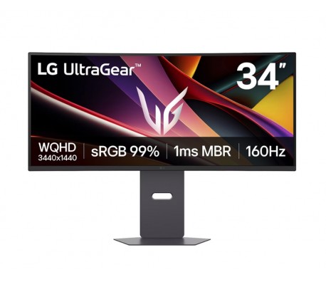 LG 34G600A-B, 34", UltraGear 21:9 Curved, VA, 1ms MBR, 5ms, WQHD (3440x1440), 160Hz, HDR 10, 4000:1, 300cd/m2, sRGB 99%, Free-sync, NVIDIA G-SYNC Compatible, VRR, HDMI, DP, Speakers 5Wx2, LG Switch,