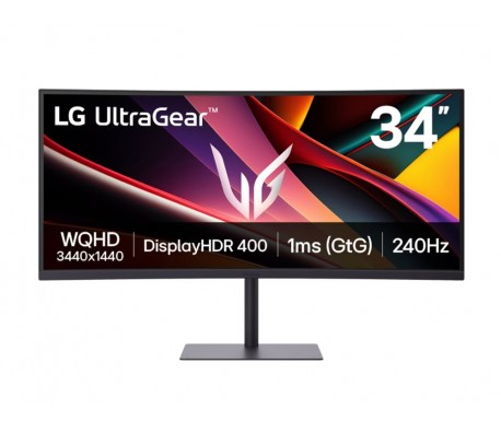 LG 34G630A-B, 34", UltraGear 21:9 Curved, VA, 1ms MBR, 5ms, WQHD (3440x1440), 240Hz, HDR 400, 4000:1, 300cd/m2, DCI-P3 95%, Free-sync, NVIDIA G-SYNC Compatible, VRR, USB, USB-C, HDMI, DP, Speakers 5W