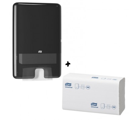 ПРОМО КОМПЛЕКТ 1 КАШОН КЪРПИ ЗА РЪЦЕ TORK H2 UNIVERSAL 237Л 2ПЛ БЯЛА 20БР И ДИСПЕНСЪР TORK XPRESS MULTIFOLD H2 BLACK