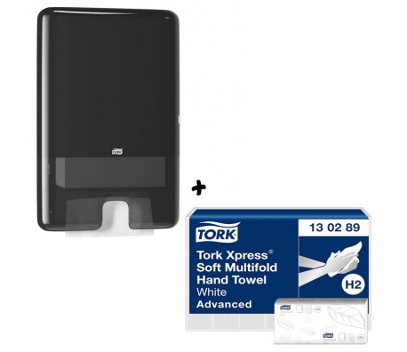 ПРОМО КОМПЛЕКТ 1 КАШОН КЪРПИ РЪЦЕ TORK XPRESS SOFT MULTIF, H2 ADV 21БР И ДИСПЕНСЪР TORK XPRESS MULTIFOLD H2 BLACK
