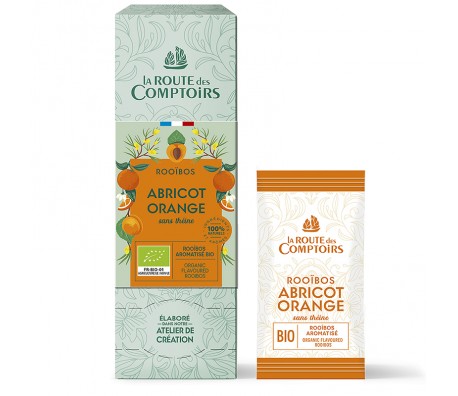 Био Ройбос с Кайсия и Портокал съчетава меките и плодови нотки на кайсия и портокал, подсилени с фин нюанс на джинджифил.