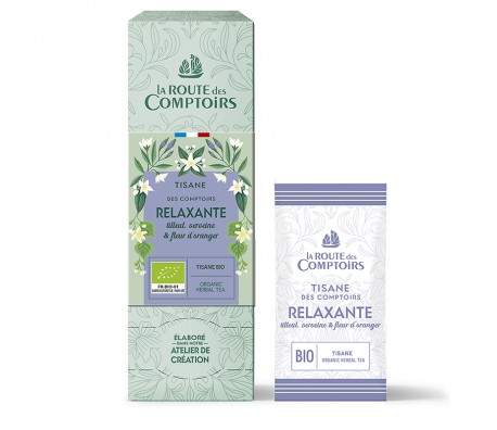 Здравословен Био Билков чай - Бутик Ришар Релакс комбинира липа, върбинка, лимонена трева, мента и цвят от портокал, за да осигури момент на релакс и спокойствие.
