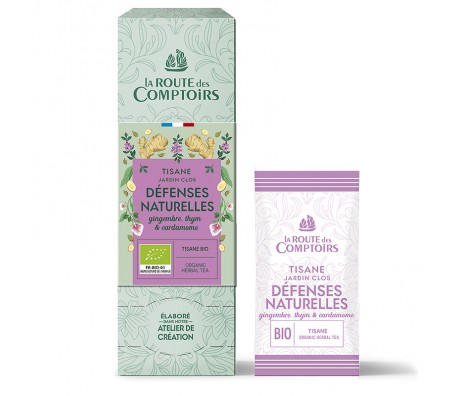 Здравословен Био Билков чай - Забранената Градина Естествена Защита съчетава джинджифил, мащерка и кардамон, за да подпомогне естествените защитни сили на организма.
