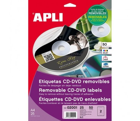 ЕТИКЕТИ БЕЛИ ЗА CD/DVD APLI Ф114/41 2БР/ЛИСТ 25Л