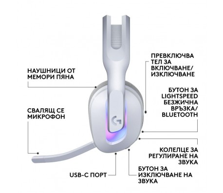 Геймърски слушалки Logitech G522 Lightspeed Wireless RGB, Микрофон, Бели