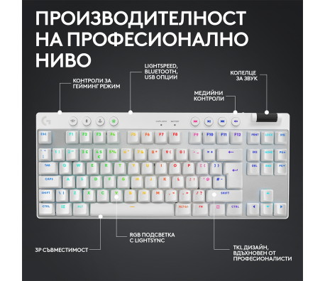 Геймърска механична клавиатура Logitech G Pro X TKL White - Tactile