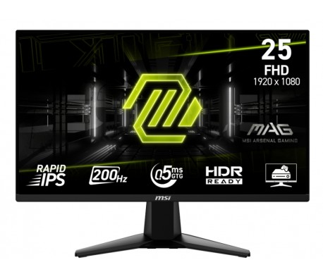 MSI MAG 255F E20, 24.5", 0.5ms, 200Hz, Rapid IPS, 1920x1080 (FHD), 16:9, AMD FreeSync Premium, 79% DCI-P3, AG, HDR Ready, 300 nits, 1000:1, DCR 100M:1, DP(1.2a), 2xHDMI 2.0b, Tilt, VESA, Black, 3.24k