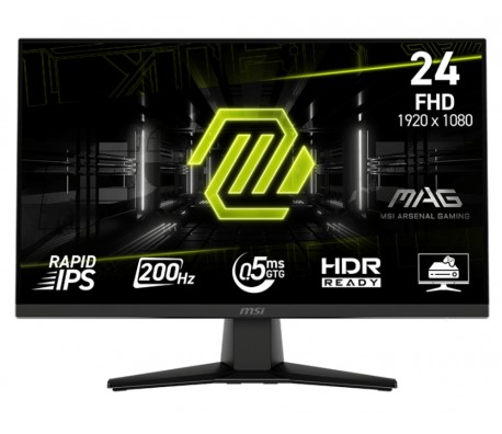 MSI MAG 242F, 23.8", 0.5ms, 200Hz, Rapid IPS, 1920x1080 (FHD), 16:9, AMD FreeSync Premium, 89% DCI-P3, AG, HDR Ready, 300 nits, 1000:1, DCR 100M:1, DP(1.2a), HDMI 2.0b, Tilt, VESA, Black, 3kg