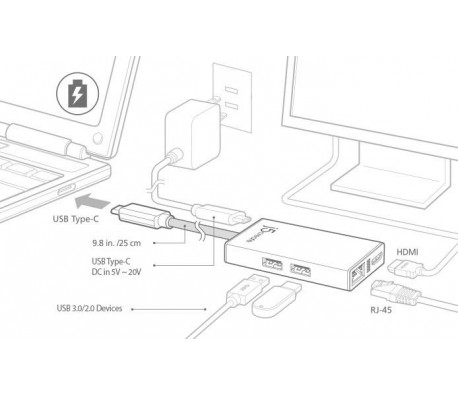 Мултипортов USB-C адаптер j5Create JCA374, HDMI, Ethernet, USB 3.0 хъб, PD 2.0