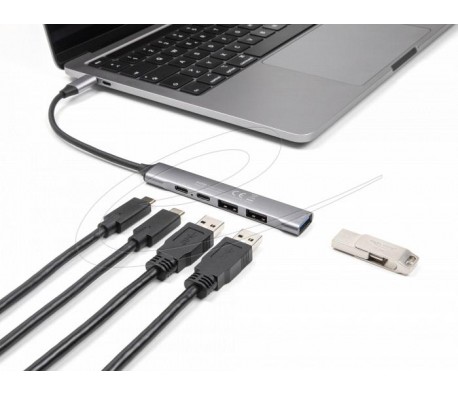 Delock Хъб USB-C, 4 порта, 1 x USB-A 10 Gbps, 2 x USB-A, 1 x USB-C, USB-C PD 95 W