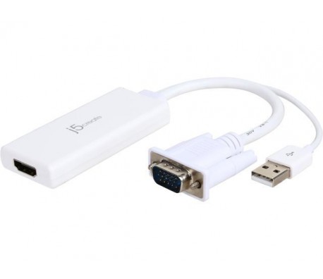 Аудио видео адаптер j5create JDA214, VGA/USB мъжко - HDMI женско, Бял