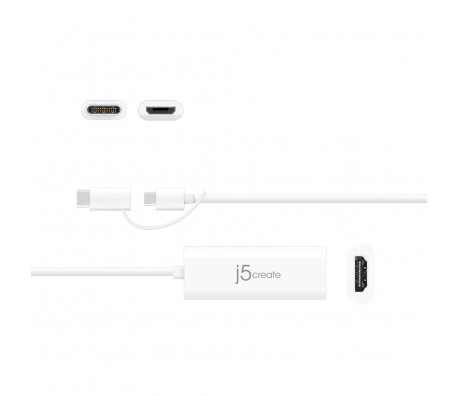 Видео адаптер j5create JUA165C, За андроид, USB-C/USB-B мъжко - HDMI женско, Бял