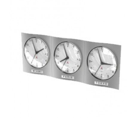 Комплект от три стенни часовници. Всеки часовник се състои от една пластмасова леща, големи черни цифри на бял фон и кварцов механизъм с висока точност. Лесно персонализиране на текста под всеки часовник. Идеалното време за четливост, благодарение на своите големи черни цифри на бял фон. Високо прецизен кварцов механизъм.
