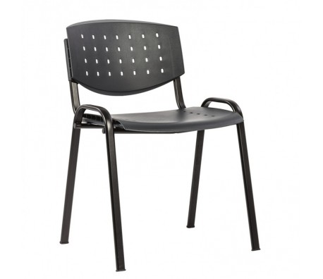• посетителски стол с черна рамка • овален профил 15x30 мм с дебелина 1.5 мм • протектори на краката за защита на всички видове настилки • седалка и облегалка от перфорирана пластмаса с възможност за изобр от шест цвята • опция за подлакътници и масичка • възможност за стифиране • максимално натоварване до 150 кг • произход – ЕВРОПЕЙСКИ СЪЮЗ • сертифициран от SZ? - Европейски инженерно-изпитателен институт