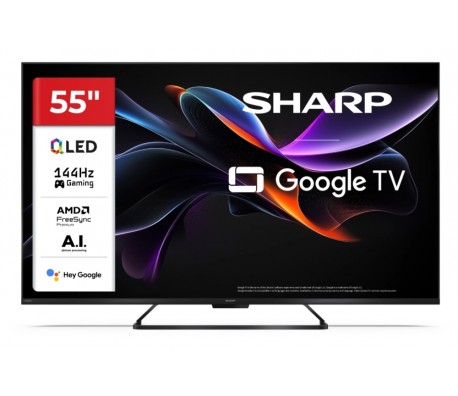Sharp 55HR7265E, 55" QLED GOOGLE TV, 4K 144Hz Quantum Dot 3840x2160 Frameless, AQUOS AI, DVB-T/T2/C/S/S2, Active Motion 1400, HDR10, Dolby Atmos, Dolby Vision, DTS:X, Google Assistant, HDMI eARC, Mi