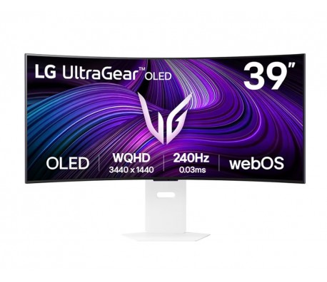 LG 39GX90SA-W, 39", OLED UltraGear 21:9 Curved Smart, IPS 0.03 ms, WQHD (3440x1440), 240Hz, HDR 10, 1500000:1, 250 cd/m2, DCI-P3 98.5%, USB 3.0, VRR, Free-sync, G-Sync, USB-C, PD 65W, HDMI, DP, PBP,