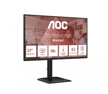 AOC Q27E4U, 27" IPS WLED, 2560x1440@120Hz, 4ms GtG, 350cd m/2, 1500:1, 20M:1 DCR, Adaptive Sync, FlickerFree, Anti Blue Light, 2Wx2, Tilt, Height Adjust, Pivot, Swivel, HDMI, DP, USB Hub