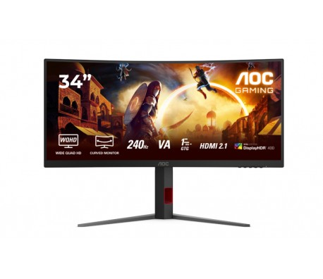 AOC CU34G4Z, 34" Curved 1500R, VA, WLED, 3440x1440@240Hz, 1ms GtG, 0.3ms MPRT, 450cd m/2, 2500:1, 80M:1 DCR, Adaptive Sync, FlickerFree, Low Blue Light, Tilt, Height Adjust, Pivot, Swivel, 2xHDMI, DP